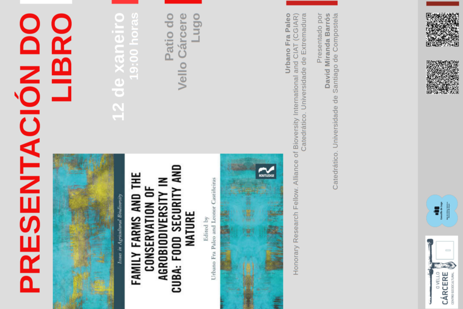Con máis de dúas décadas de investigación en agricultura e conservación da biodiversidade na illa, “Family Farms and the Conservation of Agrobiodiversity in Cuba” eríxese como un caso de estudo único no ámbito da agricultura sostible. Os editores Urbano Fra Paleo e Leonor Castiñeiras, xunto a destacados expertos na materia,… Read More »Explorando a Sustentabilidade Agrícola: Presentación do libro